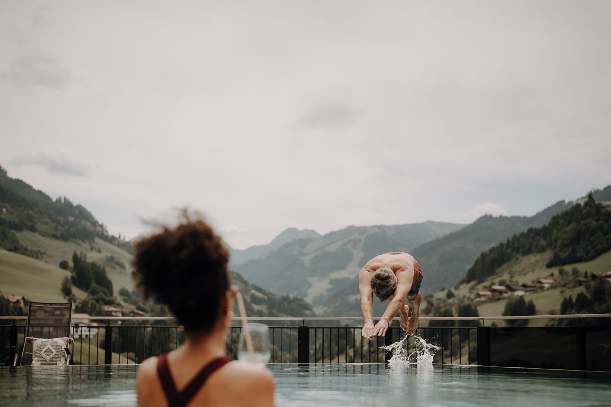 Zurück im Hotel erwarten dich entspannte Stunden in unserem Wellnessbereich. Besonders unser beheizter Outdoor-Infinity-Pool wird schnell zum Lieblingsplatz – eintauchen, abschalten und den Blick über die Berge schweifen lassen.